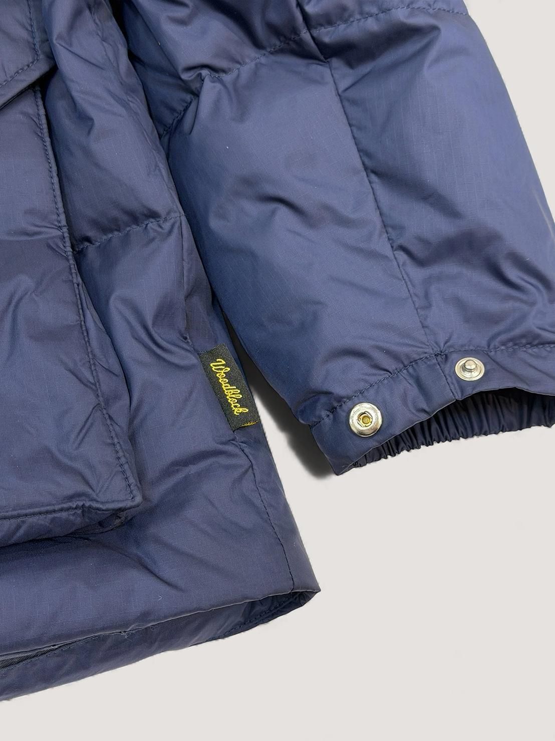 WOODBLOCK刻印入りオリジナルスナップボタン、ダブルジップ仕様、袖口にもスナップボタン付き。